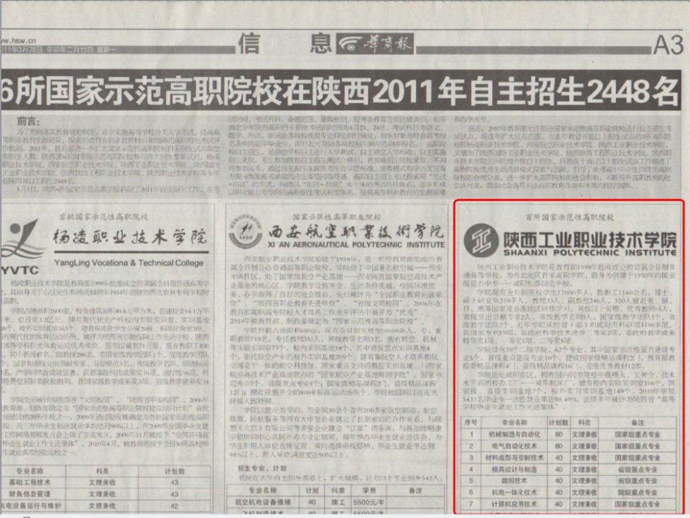 一、招生对象 符合2011年陕西省普通高校招生考试报名条件且已取得报名号的陕西省内普通高中毕业生。