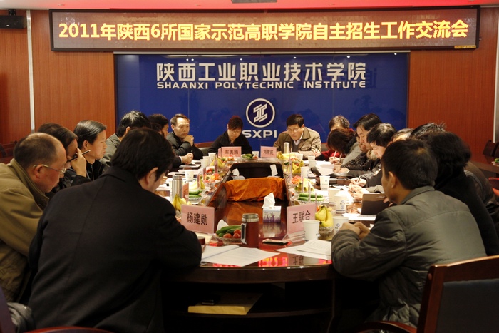 为进一步贯彻落实教育规划纲要,探索形成符合职业教育特点和规律的高职自主招生考试评价机制,3月1日下午,杨凌职业技术学院、西安航空职业技术学院、陕西工业职业技术学院、陕西国防工业职业技术学院、陕西铁路工程职业技术学院、陕西职业技术学院6所国家示范高职学院领导和招生、教务部门的负责人齐聚陕西工院,研讨2011年自主招生工作。